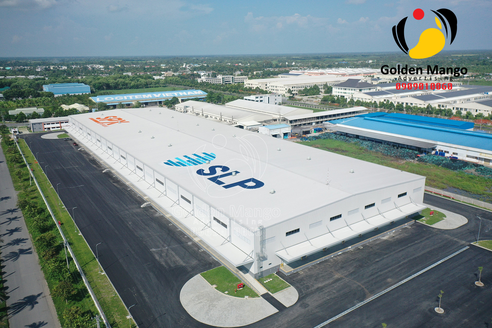 Vẽ logo trên mái nhà kho Shopee tại KCN Bình Minh – Vĩnh Long