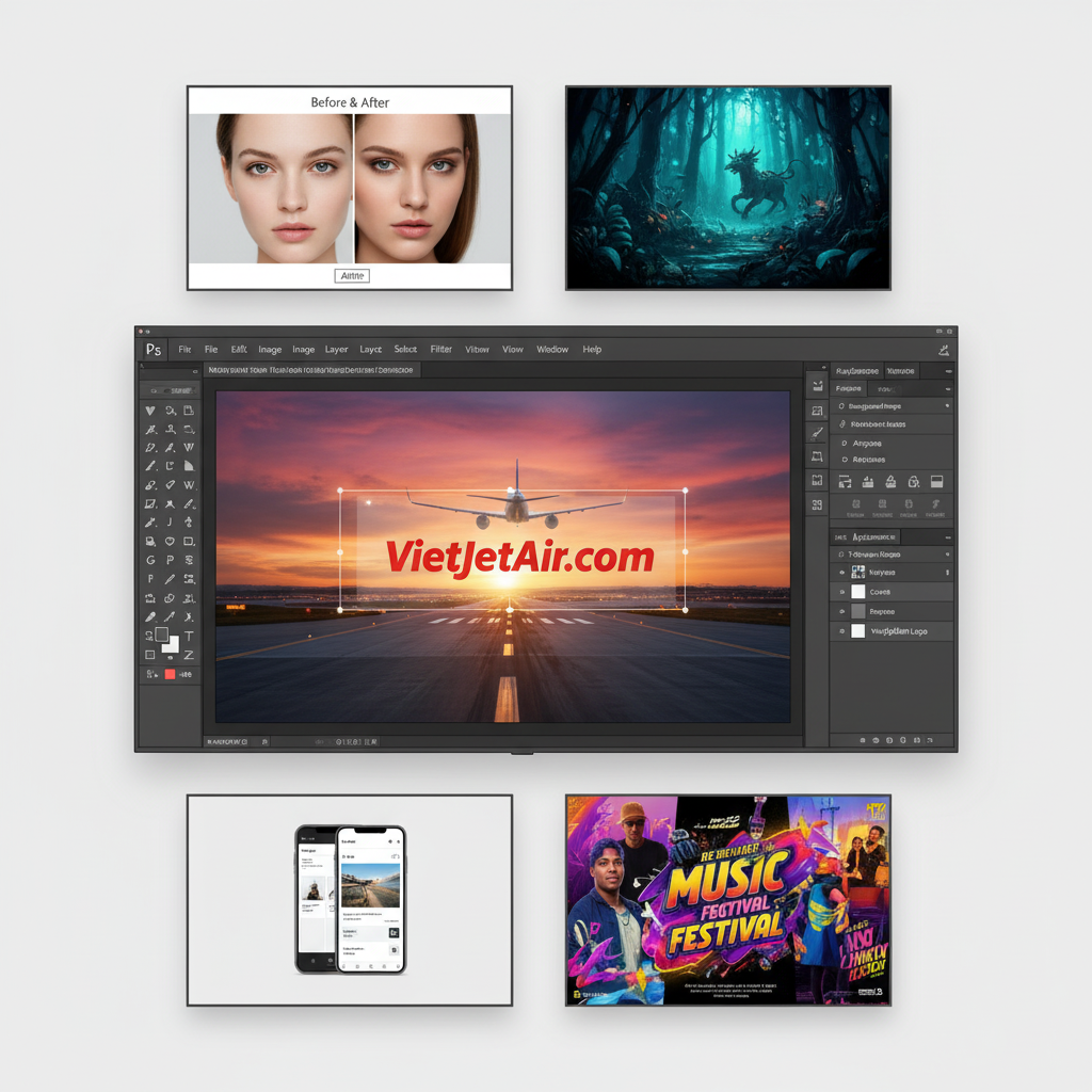 • Ứng dụng tốt nhất: Chỉnh sửa ảnh quảng cáo, thiết kế banner website, bài đăng mạng xã hội (Facebook, Instagram), digital painting.