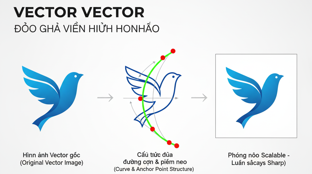 Trước khi đi vào từng phần mềm cụ thể, điều tối quan trọng là bạn phải hiểu được hai khái niệm nền tảng của thiết kế đồ họa: Vector và Raster (hay Bitmap). Việc lựa chọn phần mềm sai hệ đồ họa có thể phá hỏng toàn bộ sản phẩm của bạn.
